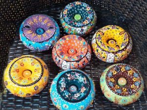 Filled with vibrant colors, traditional motifs, and textured patterns—this decorative ashtray stands out beautifully in your home or office.