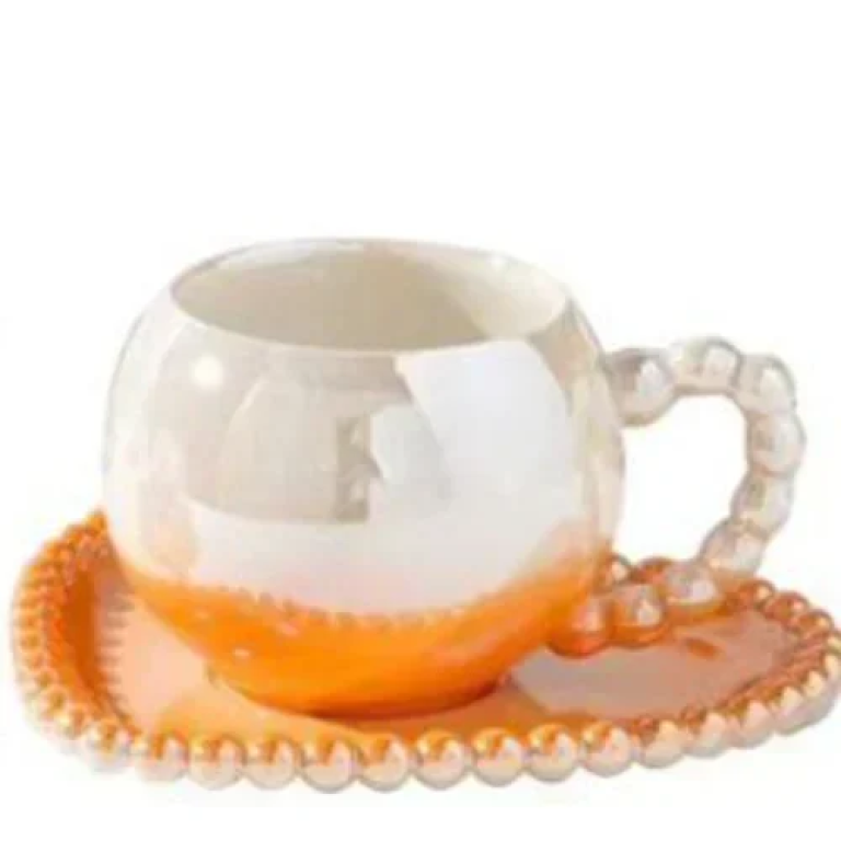 Heart-Shaped Ceramic Mug with Saucer – Perfect for Coffee or Tea (Orange)