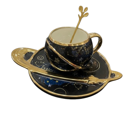 Upgrade your daily tea or coffee moments with the Planet Shape Gold-Rimmed Ceramic Mug with Saucer & Spoon, a perfect blend of elegance, creativity, and functionality. Designed with a unique planet-inspired shape and finished with a luxurious gold rim, this mug set adds a premium touch to your home, office, or gift collection.