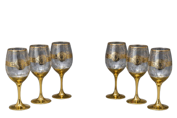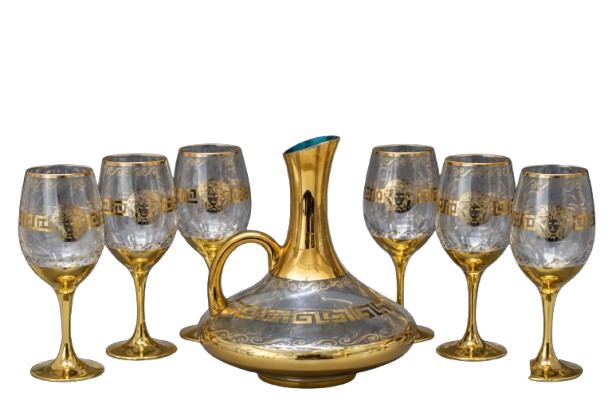 A: This set includes 7 pieces of luxury gold glass drinkware.