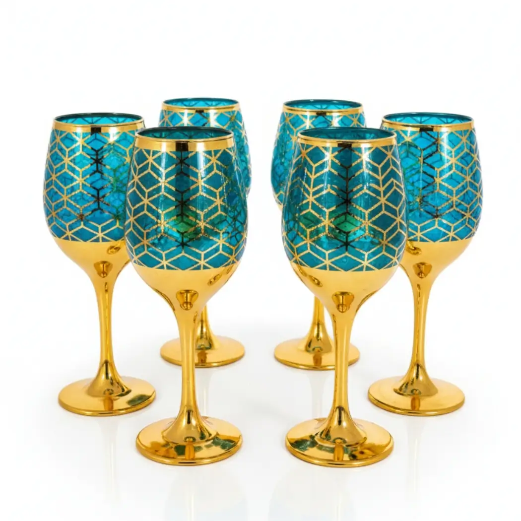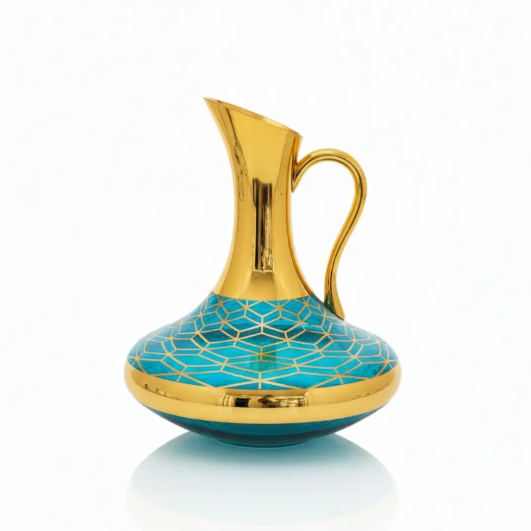 Premium Gold-Rimmed Turquoise Jug Glasses Set of 7 – Stylish & Durable