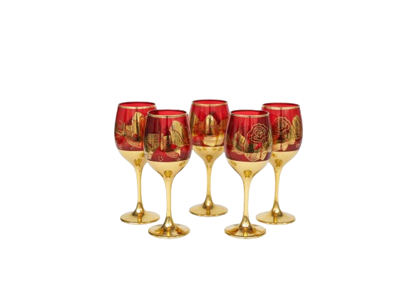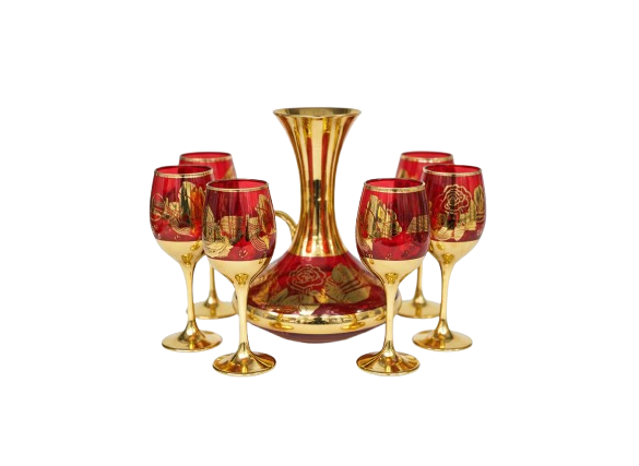 Premium Luxury Red and Gilt Glass -Rimmed Jug Glasses Set of 7 – Stylish & Durable